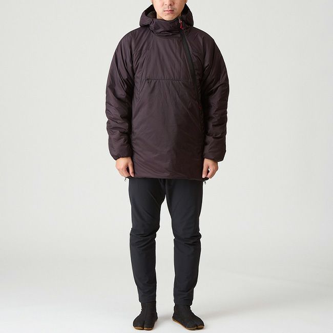 独特の雰囲気の漂うヨヒヤミには唯一無二のデザインのアグラスカートを合わせることで土偶スタイルの出来上がりです。これは冬のシノギングの完成された着こなしと言っても過言ではありません。また、ヨヒヤミの機能、つまり汗をためこまないことを最大限に感じてもらうために、肌着とヨヒヤミのあいだには通気性の低い=汗を透過しにくい衣服を重ねるのではなく、ウールやフリースなど保温性があって通気性の高い衣服を重ねることがポイントです。