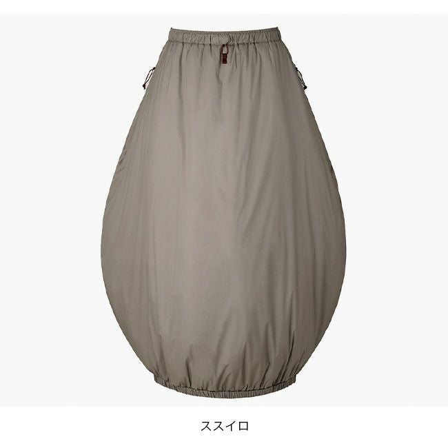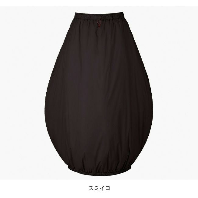 アグラスカートは、あぐらをかいても膝が突っ張らず、座ったままでも暖かさを保つ樽型シルエットが特長の防寒スカートです。