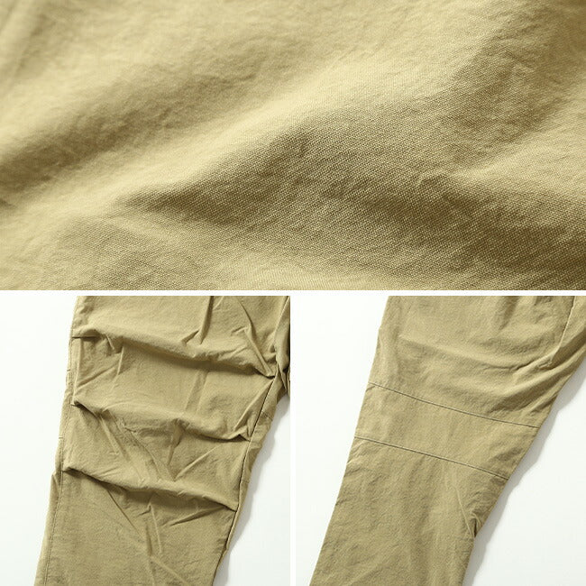 ナイロン100%でありながらほとんど光沢のないナチュラルな風合いと膨らみ感のある素材を採用したパンツです。