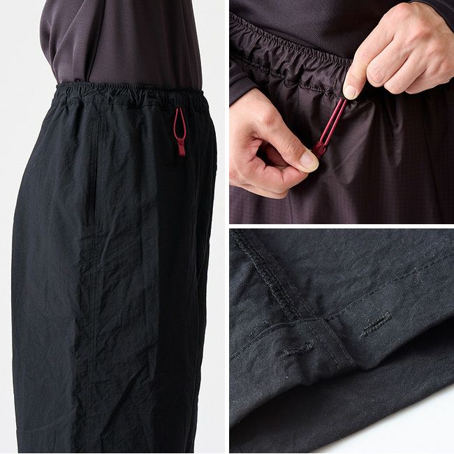 ウエストはストレッチドローコード仕様で調整しやすく、ワイドシルエットによる通気性も抜群。
