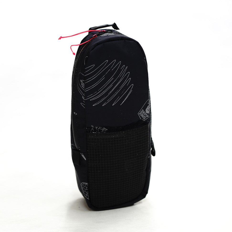 防水性のあるコーデュラ3レイヤーにULTRA HEAVY柄のリフレクタープリント。夜間にUH柄が反射して光ります。