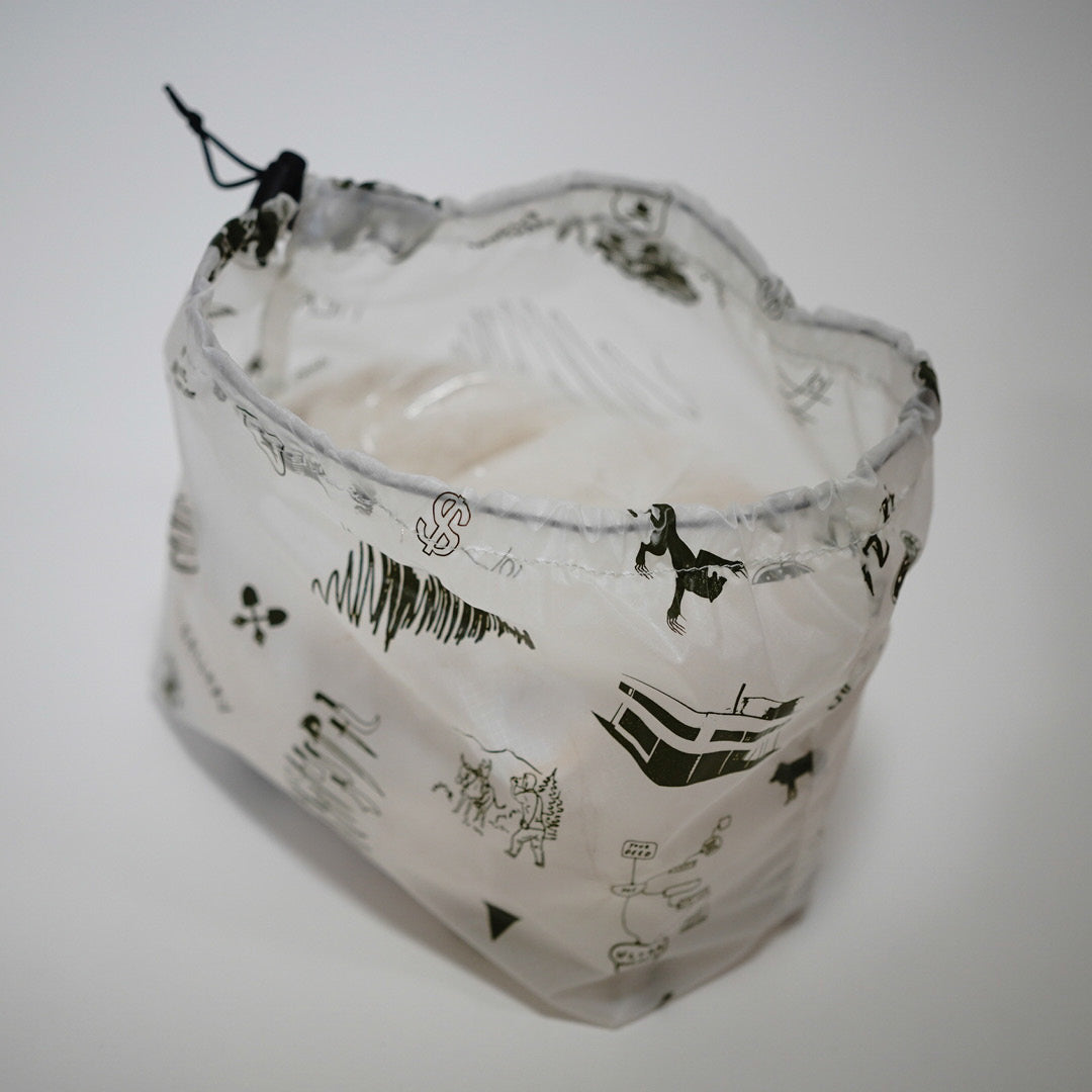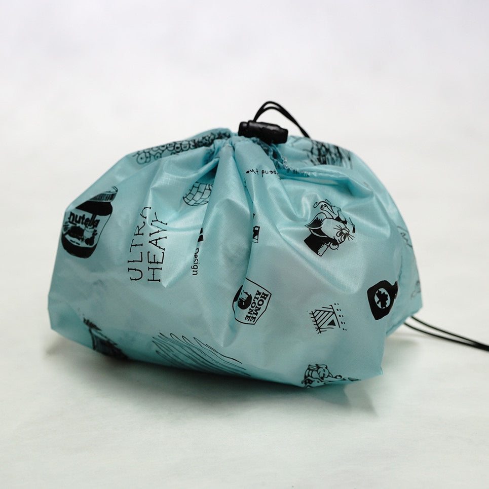 軽量で防水性の高いシルナイロンにUHプリントを施したバックパックの中でも視認性が高いポップなスタッフサック。着替えや温泉バッグ等、工夫次第で色々使える製品です。