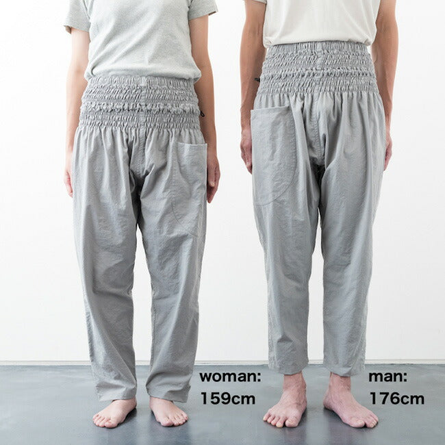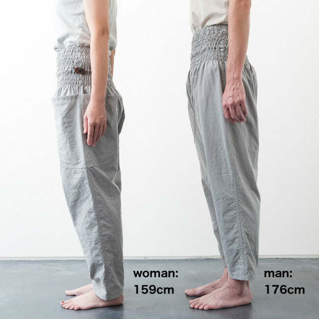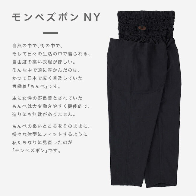 主に女性の野良着とされていたもんぺは大変動きやすく機能的で、造りにも無駄がありません。そのもんぺの良いところをそのままに、様々な体型にフィットするように私たちなりに見直したのが「モンペズボン」です。