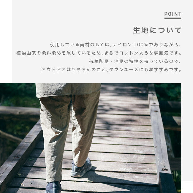 NYは、ナイロン100%でありながら、植物由来の染料染めを施しているため、まるでコットンような雰囲気です。