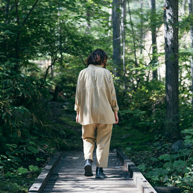 自然の中で、街の中で、そして日々の生活の中で着られる、自由度の高い衣服がほしい。そんな中で頭に浮かんだのは、かつて日本で広く普及していた労働着「もんぺ」です。