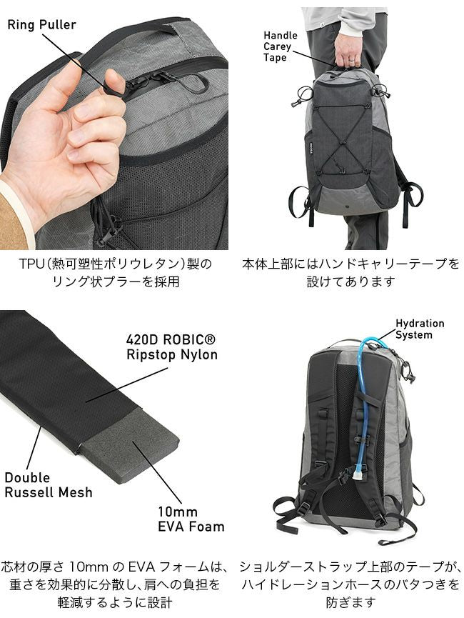 日々の生活とハイキングで分け隔てなく使用できる、機能・容量・デザインを兼ね備えたデイパック。