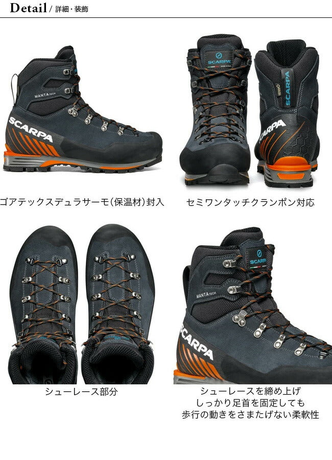 | 製品保証 | スカルパ社の登山靴には第一購入者に対して、ご購入日から2年間の製品保証が付属します。材質や製造上の原因で製品に不具合が発生した場合、謹んで無償修理/交換などの対応をとらせていただきます。保証の適用条件などにつきましてはスカルパ製品の正規販売店にご確認ください。 |