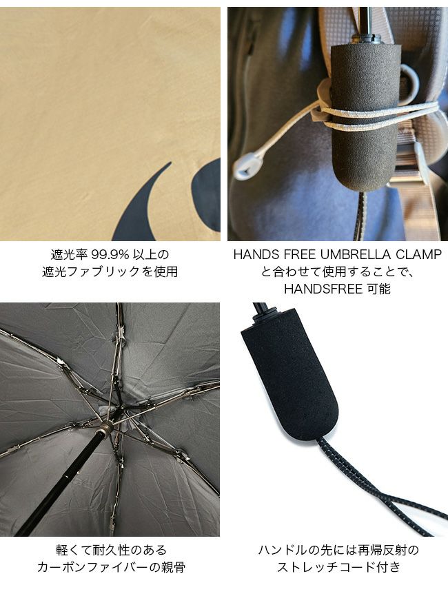 折り畳み傘では珍しくハンドルをEVA仕様にすることによりHANDS FREE UMBRELLA CLAMPと合わせてHANDSFREEも可能です。