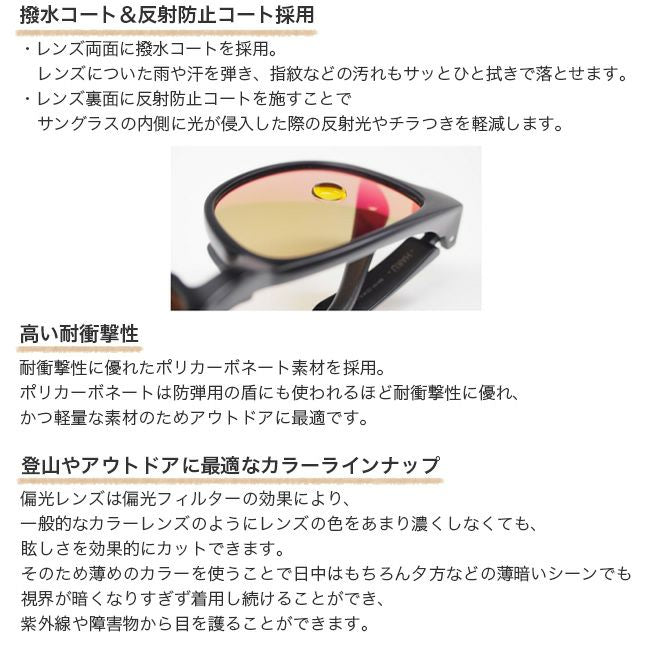 こだわりの偏光レンズと、レンズ自体の薄型軽量化。
