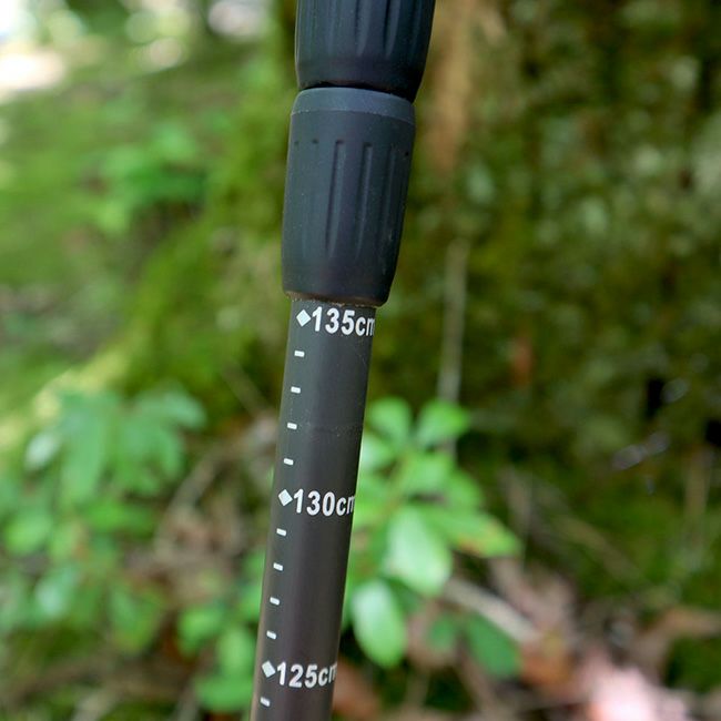 アルミ製ポールに比べて圧倒的に軽く、優れた強度を持ち、長時間の歩行やアップダウンの激しい登山でも負担を大きく軽減します。