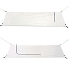 ダイニーマ生地は、ペグダウンポイントの下部の 4 つの角と、バンジーコードが取り付けられている 2 つの頂点など、生地に負担がかかることが多い部分の補強に使用されます。