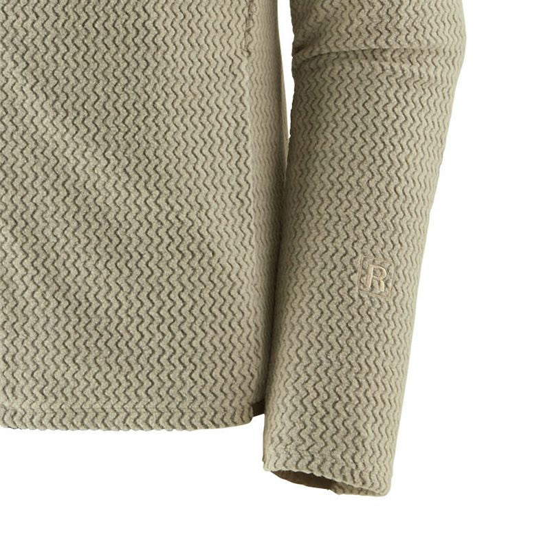 リサイクル・ポリエステル100%素材の中空糸を使用したジャカード・フリースは、冷涼な天候下のアクティビティに吸湿発散性と速乾性と優れた通気性を提供