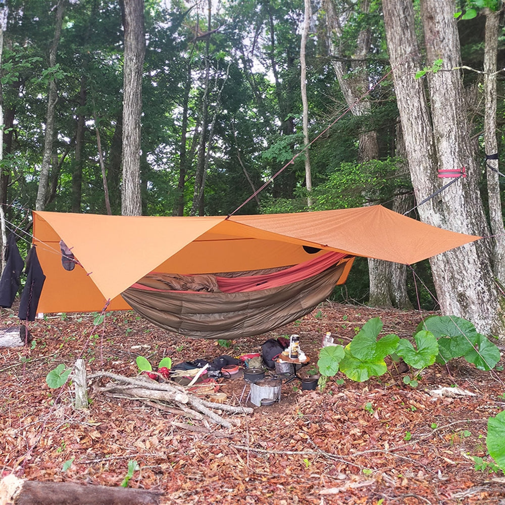 ハンモックに使えるタープはいろいろある。しかし、シノギングのようなハンモック生活における使い勝手を第一に考えたタープなんておそらくないだろう。