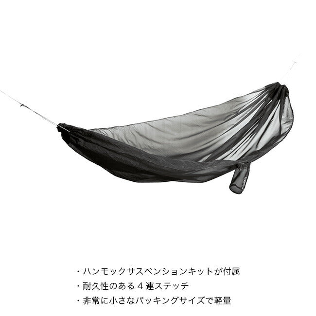 トラベル ハンモック メッシュ キットは、非常にコンパクトな収納サイズの風通しの良い超軽量のトラベルハンモックです。