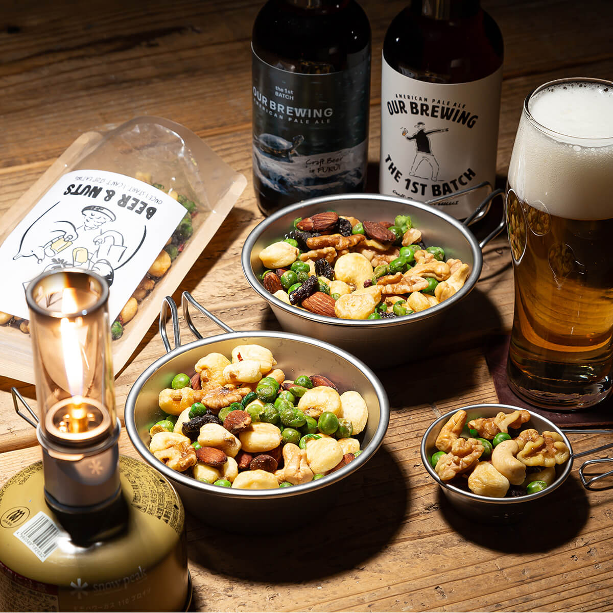 東京上野のナッツ・ドライフルーツの老舗専門店 小島屋とアウトドアショップ SUNDAY MOUNTAIN を運営するCAMPANELAがタッグを組んで、ビールとの相性抜群のスパイシーミックスナッツを作りました。