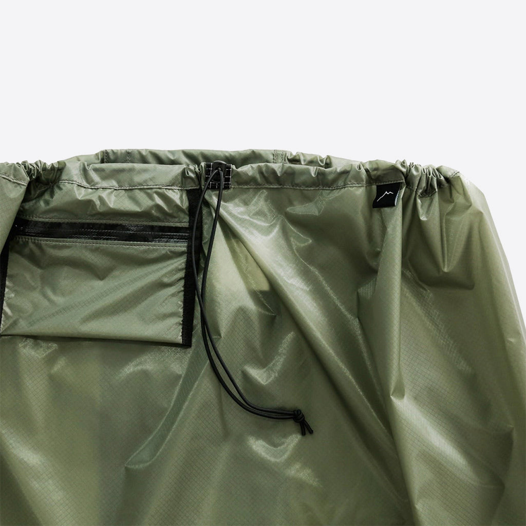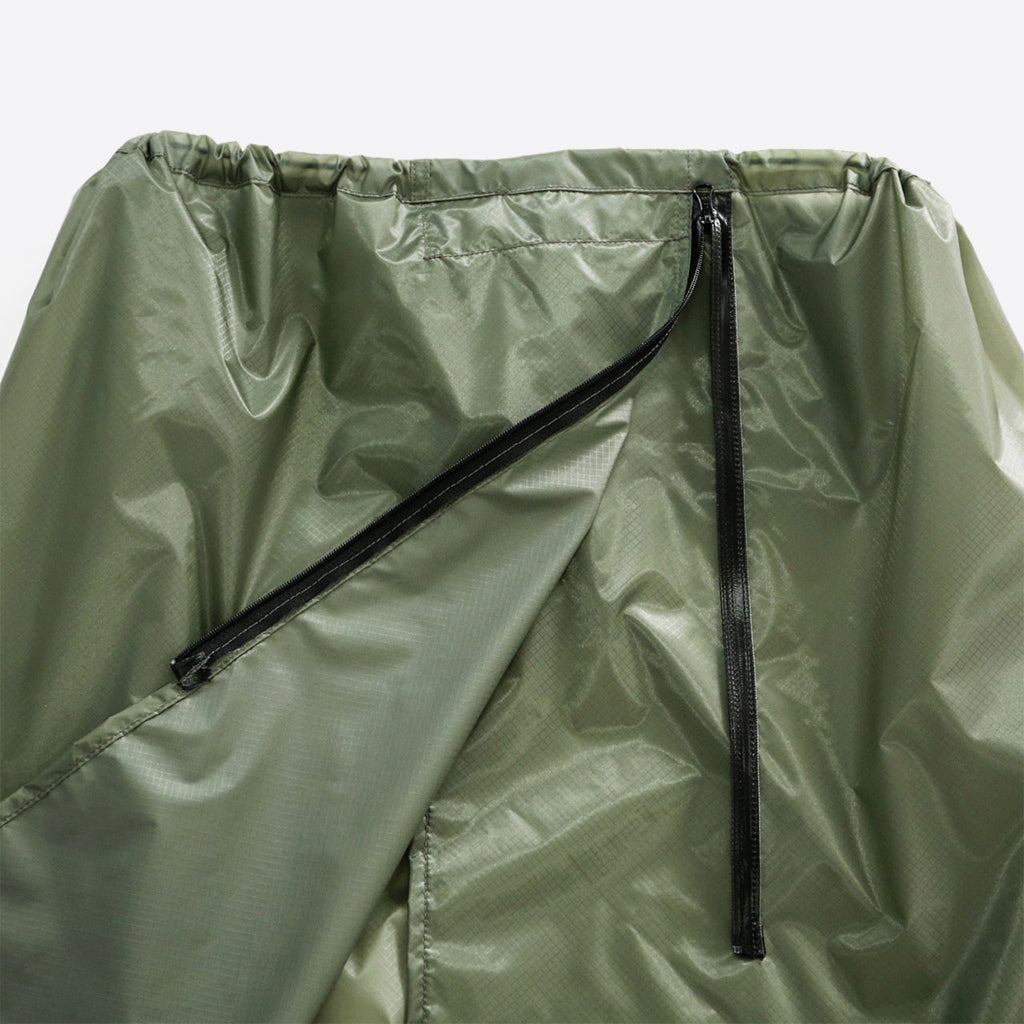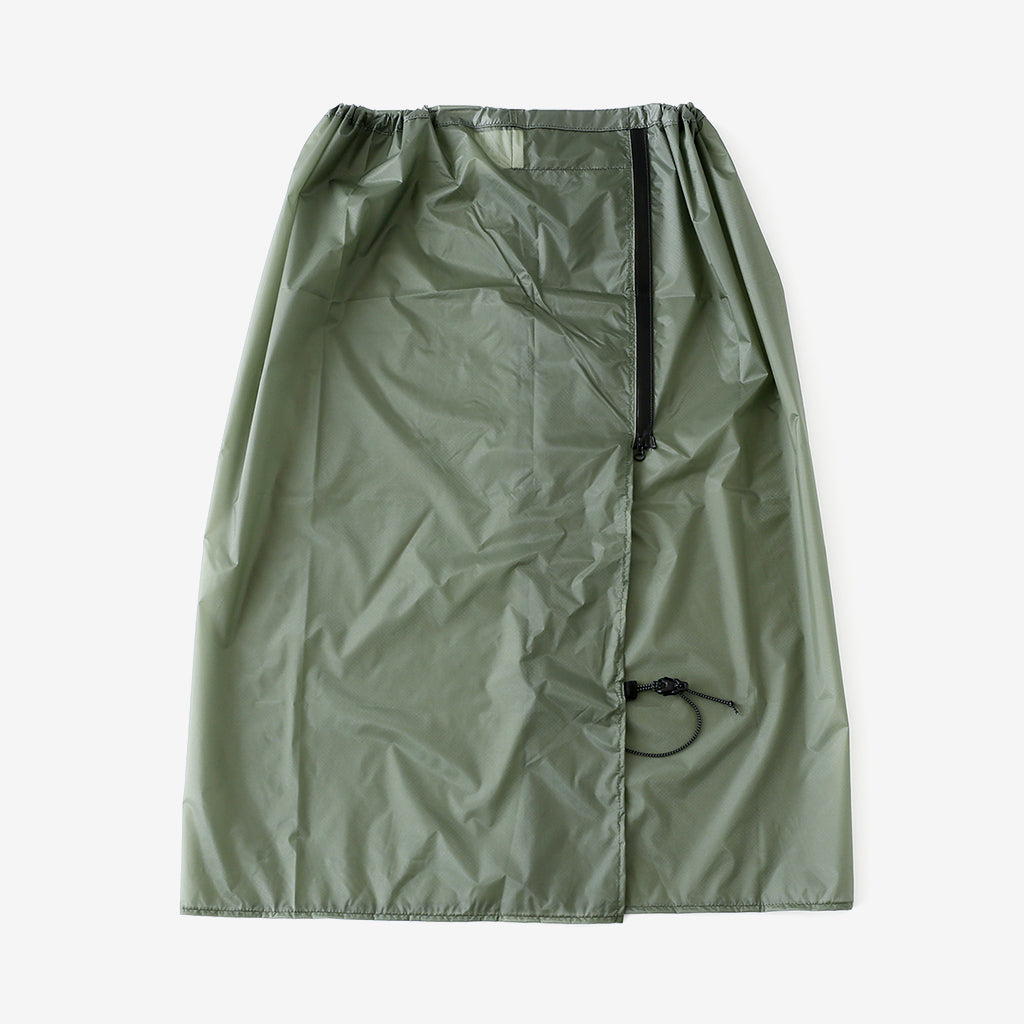 CAYL『Hiking Skirt』は、レインスカートだけでなく、ポンチョのようにも着用できるユニークなアイテム。