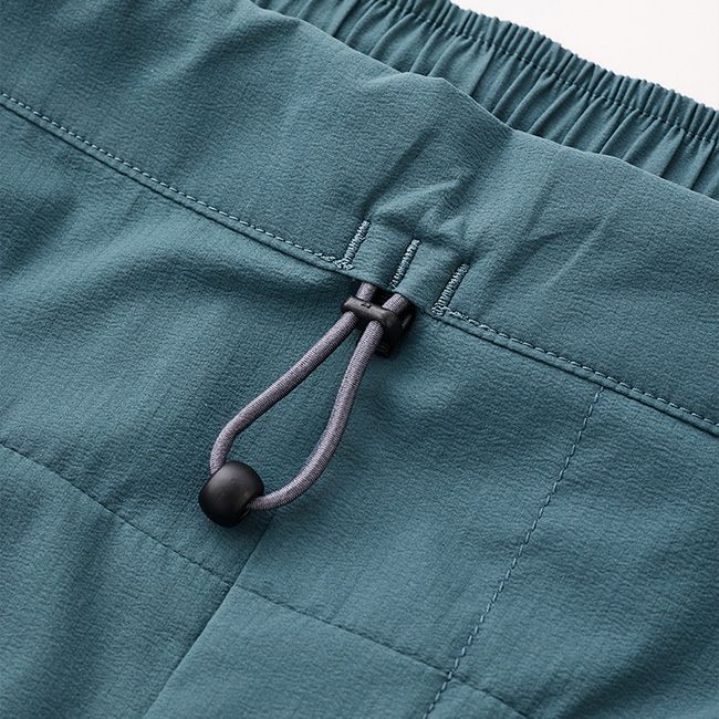 シンプルですが膝下はテーパードさせて、風によるバタつきを軽減するとともに足さばきも妨げません。