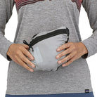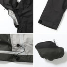 フロントポケットの内側から調節可能な裾のドローコードは風雨を遮断し、バックパックのウエストベルトの下でもかさばりを軽減