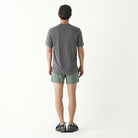 プラスチック汚染の危機にさらされている沿岸部の共同体から供給された、オーシャンサイクルの認証済みの、速乾性を備えたリサイクル・ポリエステル90%/ポリウレタン10%の織り素材。4方向への伸縮性により動きを妨げず快適なフィット。軽度の水分を弾くDWR(耐久性撥水)加工はPFASを意図的に使用せずに製造