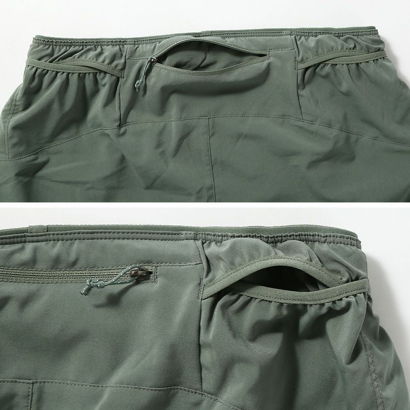 接合した継ぎ目を採用し軽量で、5つのポケットを備え、山での長い1日や近場のリンクアップなど実用性が鍵となるランニングに最適。