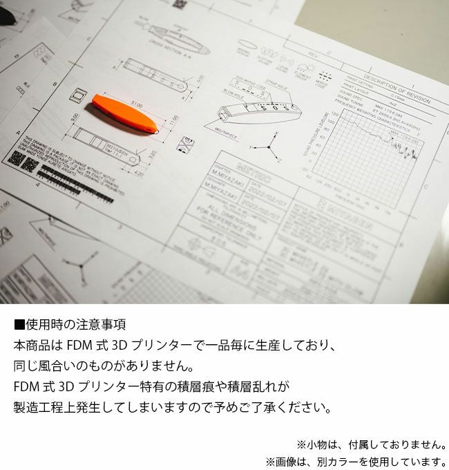 テントで眠りに落ちて、夜中に目が覚めたとき、消えたと思っていた蓄光樹脂が意外に薄暗く光っている。ふとした時に、薄暗く光り続けているこのホイッスルを見つけてくれると嬉しい、そんなホイッスルです。