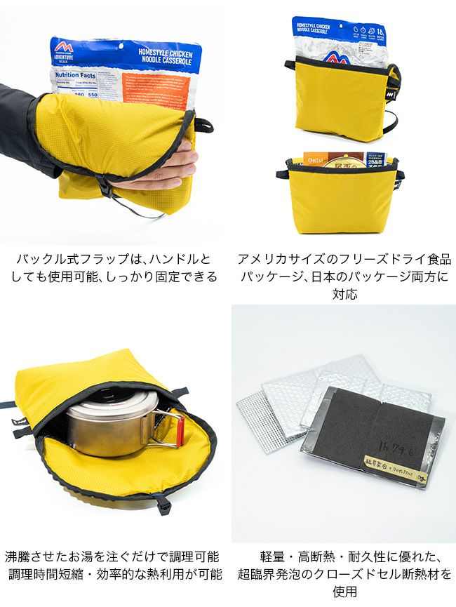 クッキングシステム全体を収納できるため、私はスタッフバッグを廃止してこのフードコジーに全てのクッキングシステムを収納して持ち運んでいます。