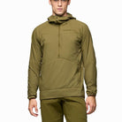 コアエリアに高い保温性、耐風性、通気性を備えるハイブリッドミドルレイヤーです。