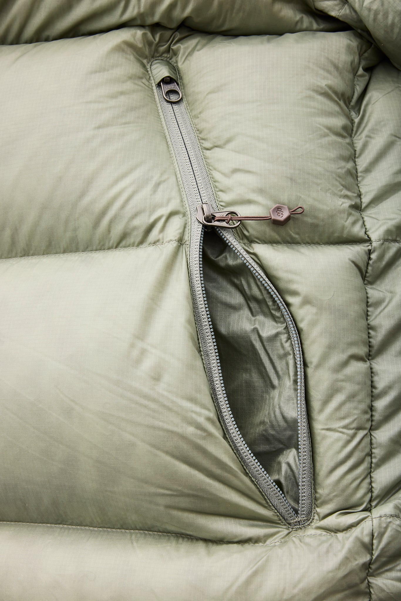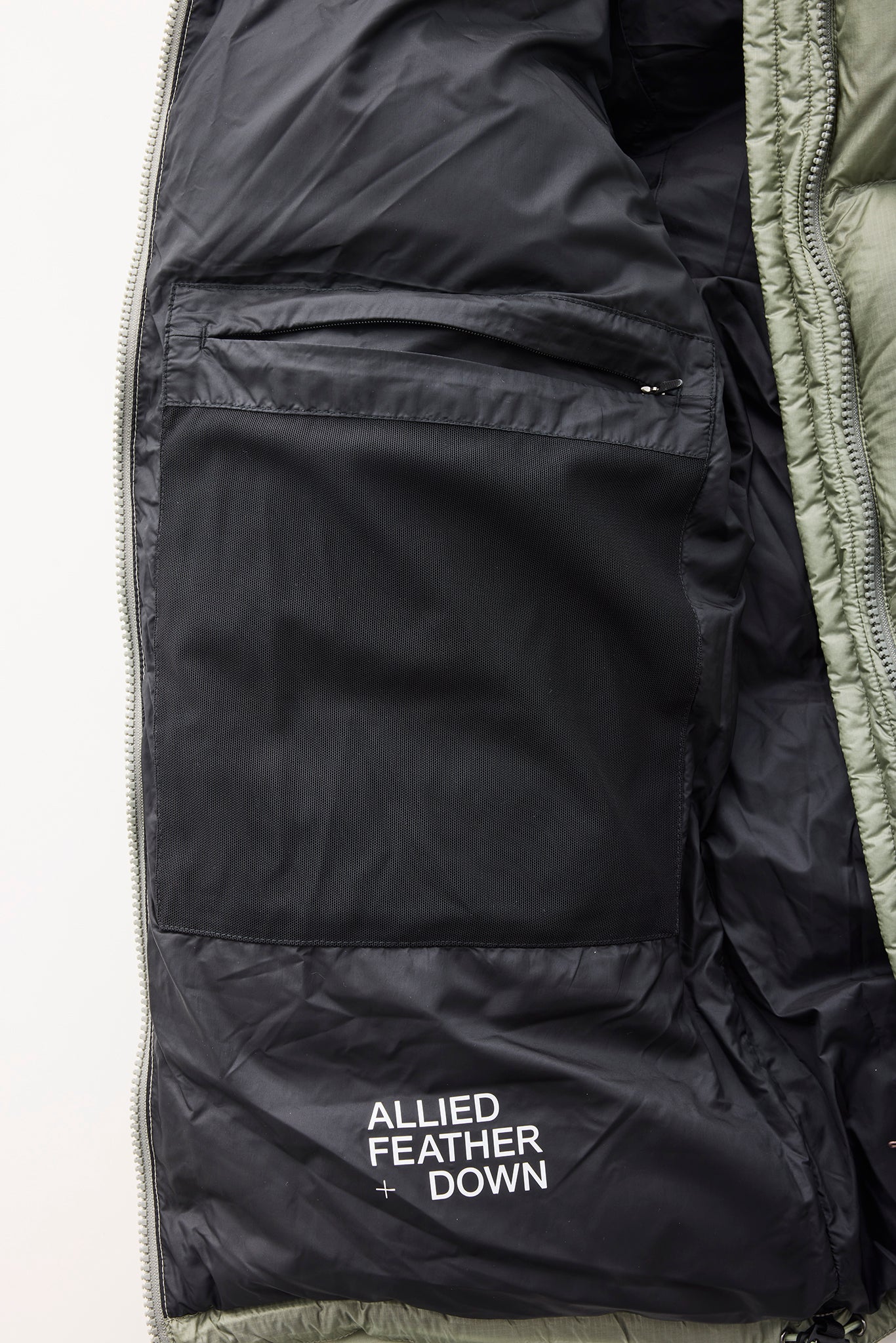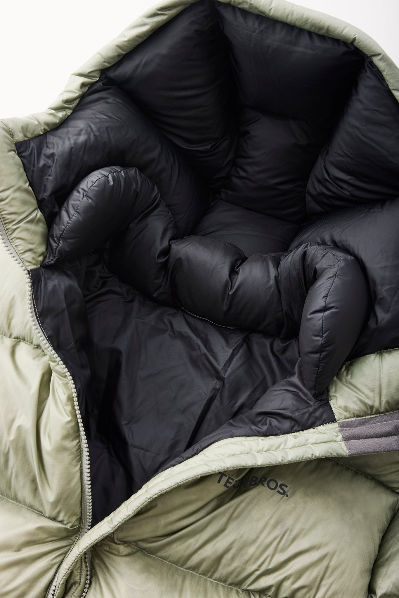 冬季の雪上キャンプやスノーモービルによる移動時など、極寒の状況下こそが主戦場。中綿にアライド社製850フィルパワー撥水ダウンを310g充填。