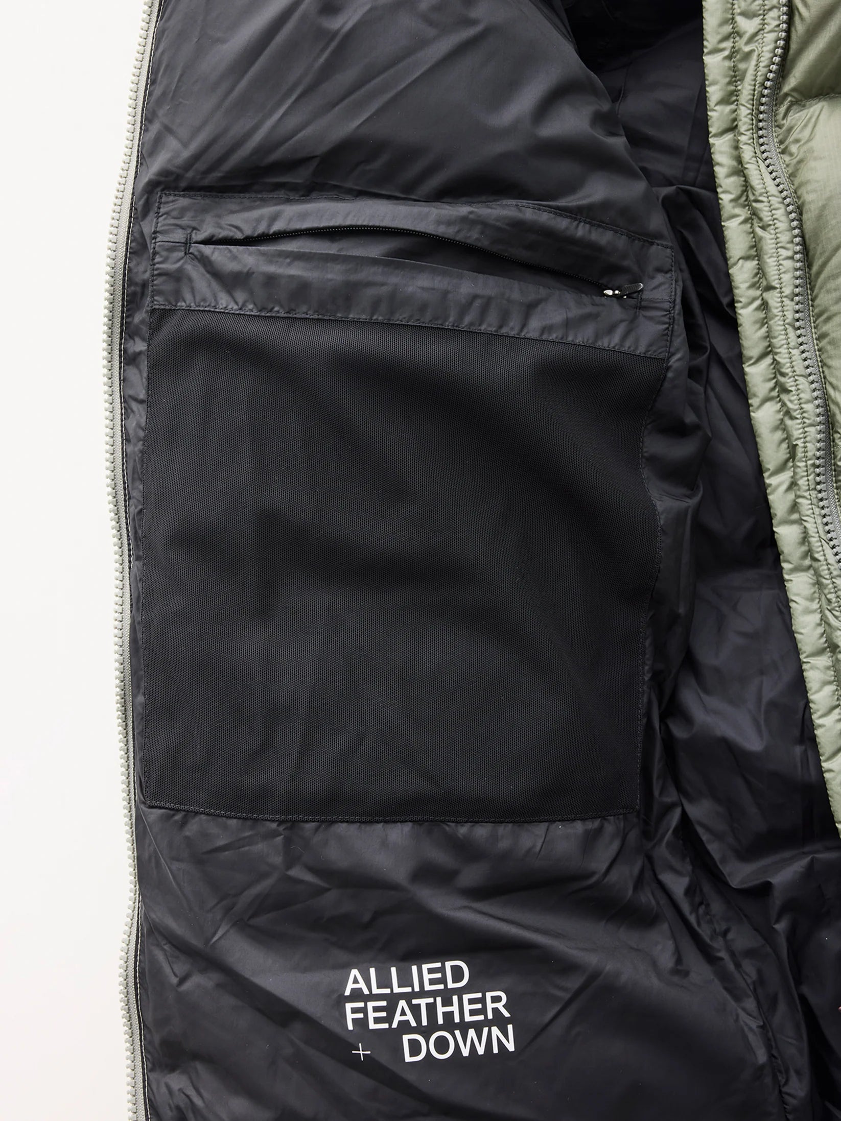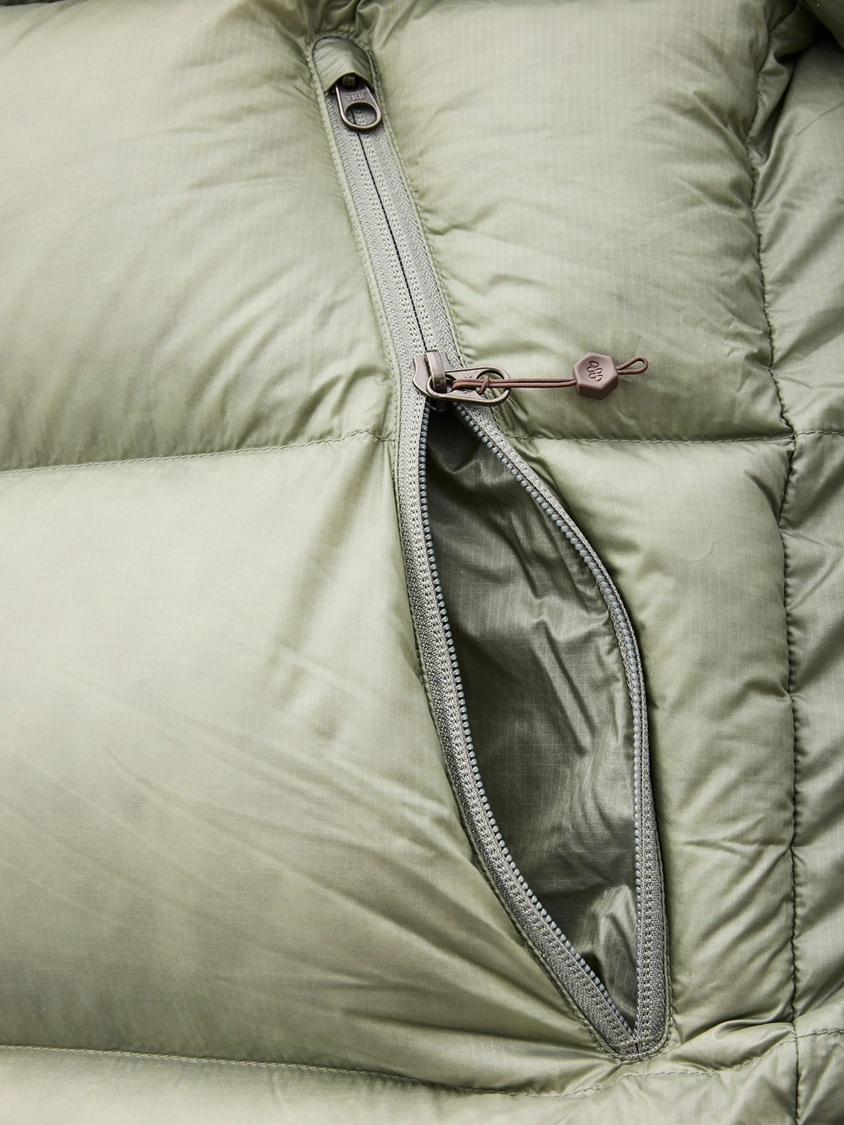 冬季の雪上キャンプやスノーモービルによる移動時など、極寒の状況下こそが主戦場。中綿にアライド社製850フィルパワー撥水ダウンを310g充填。