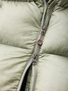 襟元にダウンチューブを配置。首周りを隙間なく包むことで、冷気の侵入とウェア内の暖気の流出を防ぐ。表生地は12デニールから10デニールのリサイクルナイロンに変更。糸が細くなったことで生地の目が詰まり強度が向上。