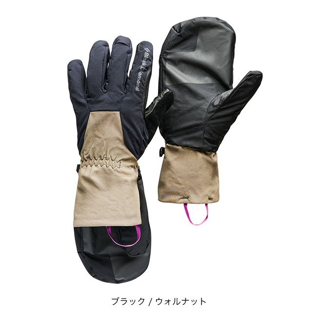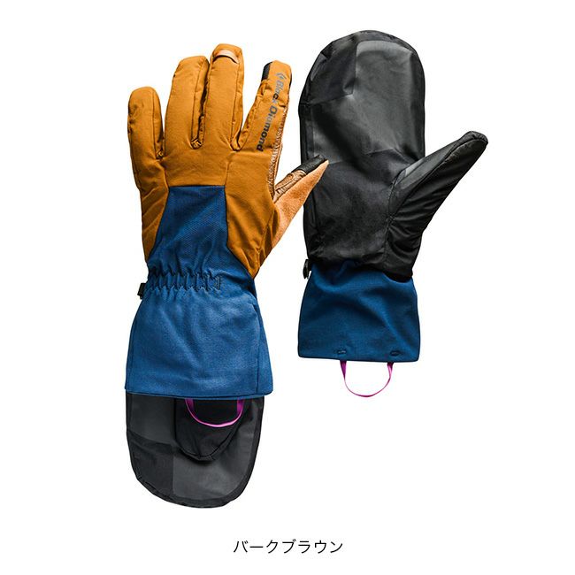 中綿入りソフトシェルに中綿入りの収納式フードを組み合わせたツーリンググローブ