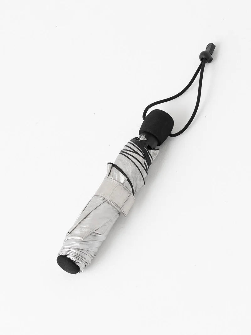 日差しの強いアメリカの砂漠地帯や高山帯における紫外線対策として「傘」はロングディスタンスハイカーの必需品。傘としての「有効面積」「軽さ」「機能」のバラ ンスから北米では折りたたみではないタイプが支持されていますが、日本ではそれに加えて「コンパクトさ」を求めるハイカーが多いことから折りたたみ傘も求められています。長いトレイルライフ、様々なシーンで傘が有効性を発揮するのは日本でも同じです。バックパックのサイドポケットに折り畳み傘をしのばせてみてはいかがですか。