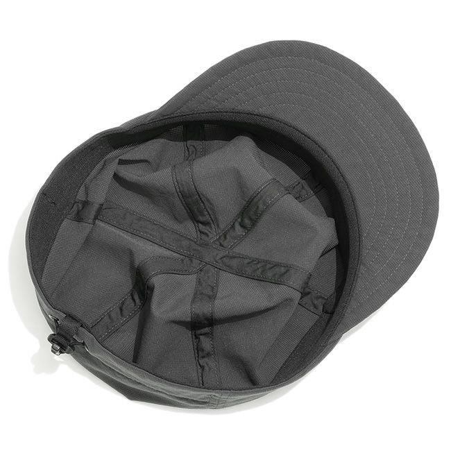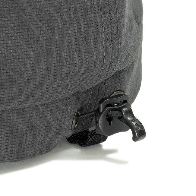 キャップの本体部分には撥水性、防風性、浸透性のあるナイロン100%素材、東レのStunner®を使用しています。