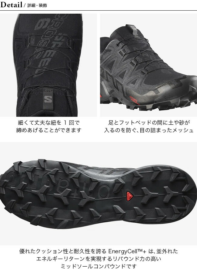 Salomon のルーツに忠実なトレイルの定番 SPEEDCROSS 6。軽量化を追求しつつさらにパワーアップしたこのバージョンは、優れたグリップが地面をしっかり捉え、泥落ちもスムーズです。防水性と通気性に優れた GORE-TEX メンブレンは濡れた地面やぬかるみに最適。アッパーも新デザインですが、SPEEDCROSS の従来の快適さはそのままです。